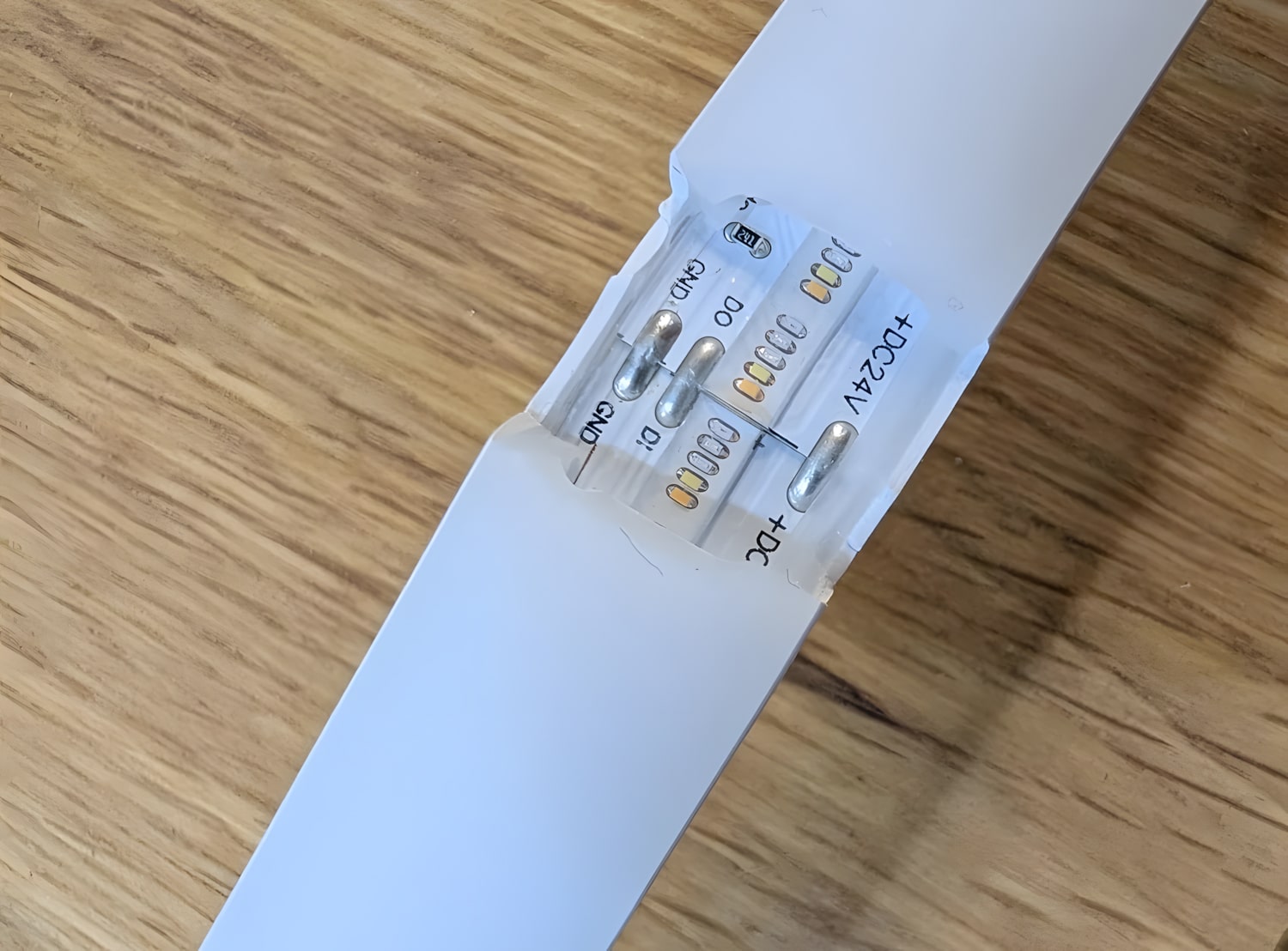 Offiziell kann dieser besondere Leuchtstreifen nur an den dafür vorgesehenen Markierungen alle 12,5 Zentimeter getrennt werden. Eine Verlängerung oder gar eine individuelle Installation ist nicht vorgesehen. Mit ein wenig handwerklichem Geschick und einer ruhigen Hand ist das aber dennoch möglich, wie jetzt ein Nutzerprojekt beweist.