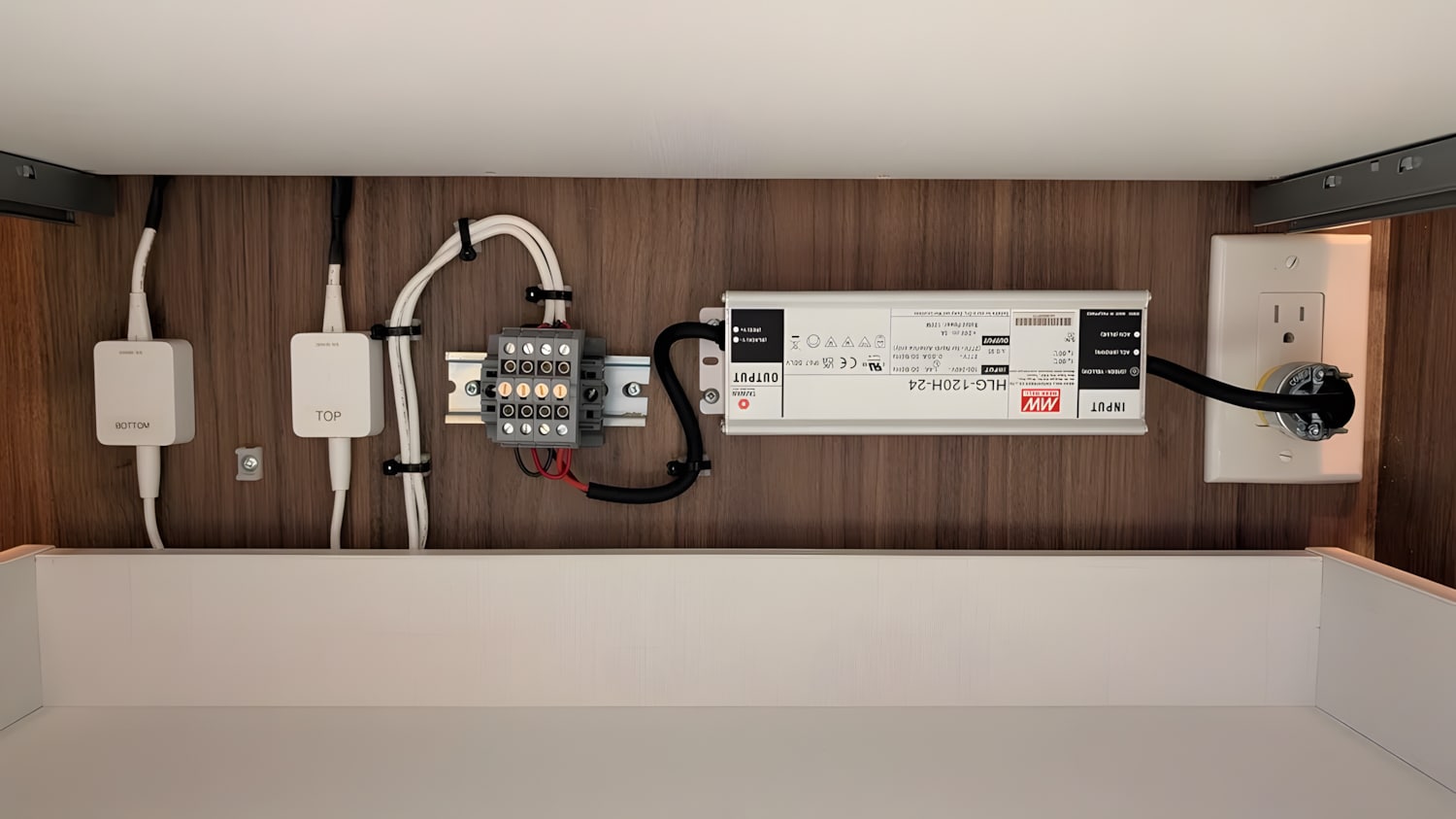 Um die unhandlichen und mit einem recht kurzen Kabel ausgestatteten Netzteile loszuwerden, hat der Bastler auch hier eine eigene Lösung verwendet. Hier reicht eine einfache 24-Volt-Stromversorgung mit genügend Leistung aus, natürlich mit entsprechender Verkabelung.